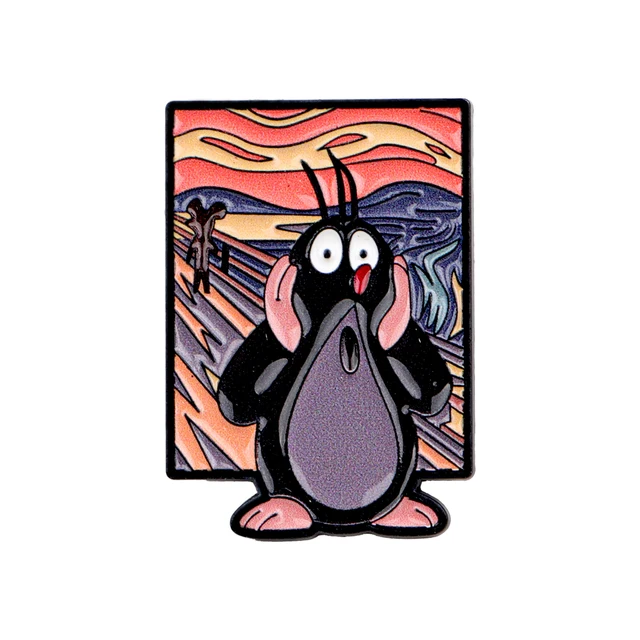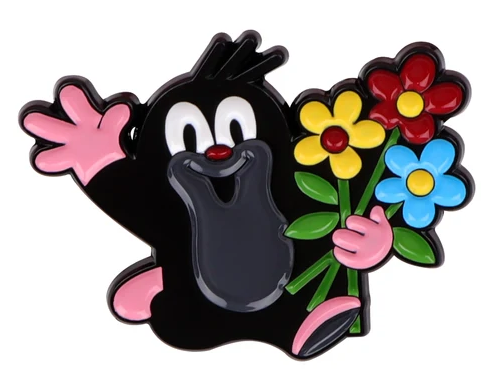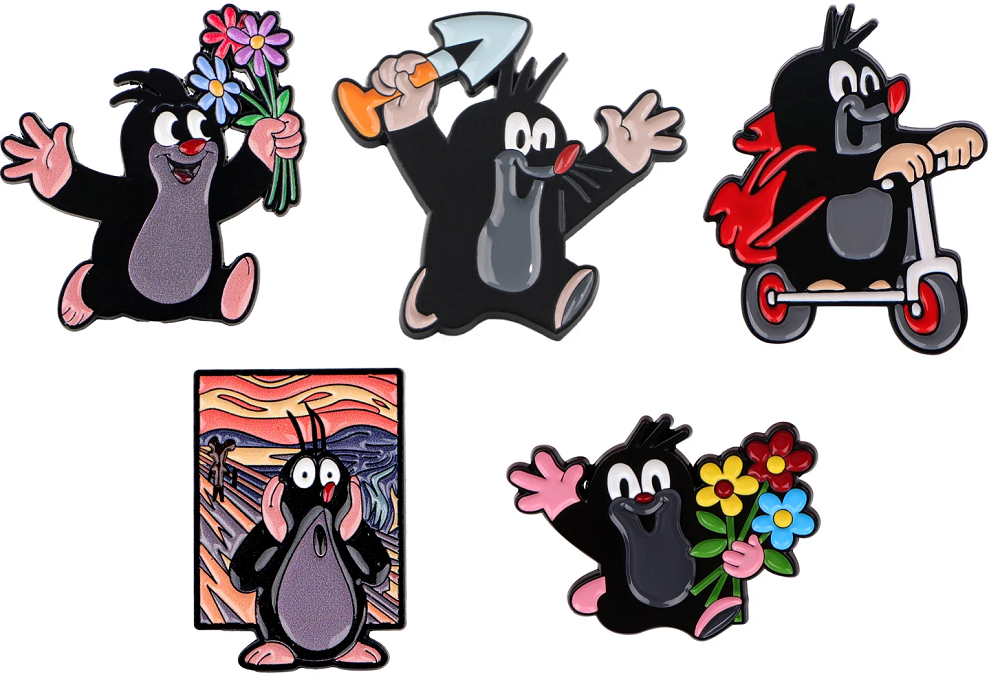 Красивые яркие значки с изображением забавного и смешного Кротика из мультфильма "Крот и его друзья".