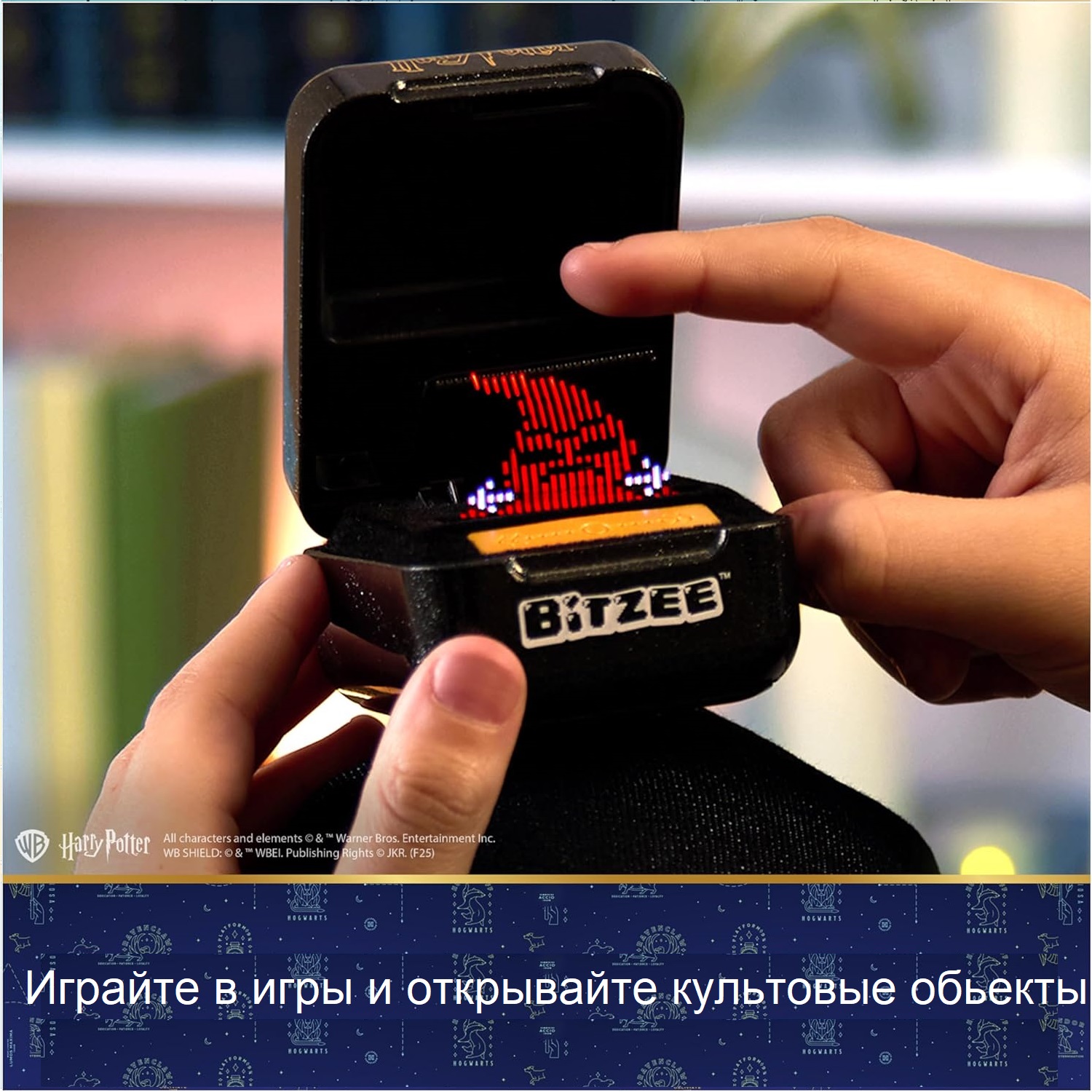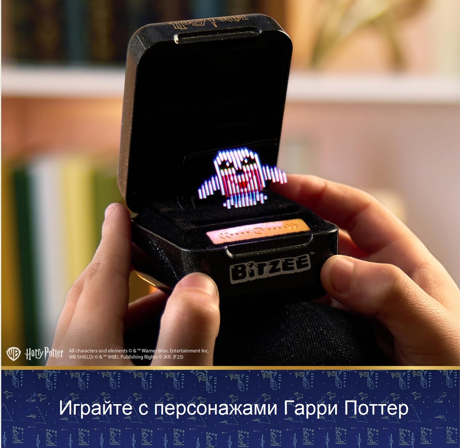 Выполняйте задания персонажей, взмахивайте контейнером, чтобы произносить заклинания и вызывать Патронуса, играйте в мини-игры, чтобы открывать культовые предметы, и многое другое. Собрав Гарри, Гермиону и Рона, сыграйте в суперигру. Чем больше вы играете с Bitzee Harry Potter, тем больше магии вам откроется.