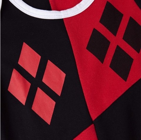 Очаровательный детский костюм комбинезон суперзлодейки комиксов Марвел Харли Квинн порадует родителей своим оригинальным дизайном и подарит ребенку чувство комфорта во время сна и прогулок.