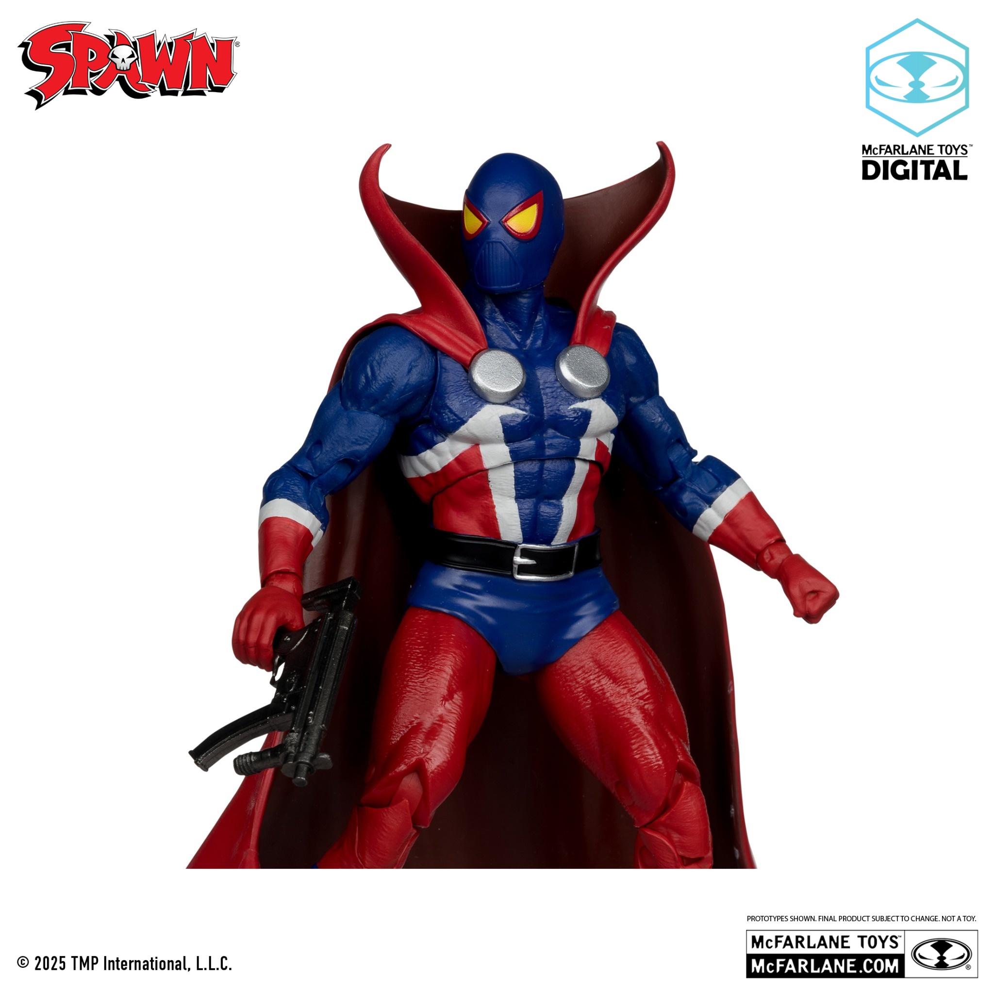 Включает переиздание комикса Spawn #1 с вариантом обложки Spawn 77, 3 вида оружия, сменные кисти рук, подставку и коллекционную открытку с изображением персонажа.