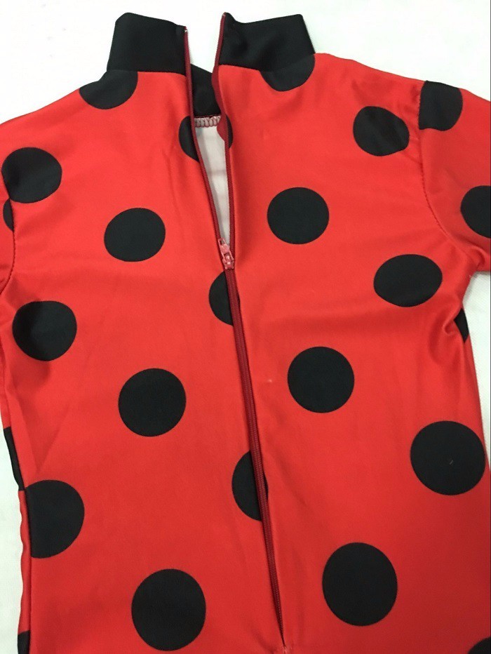 Великолепный костюм Леди Баг выполнен из качественного атласного стрейч материала в расцветке божьей коровки: красный тон с черными круглыми пятнышками. В комплект входят: костюм-комбинезон, маска и аксессуар на пояс, изображающий талисман удачи (супер-шанс). Костюм застегивается сзади на скрытую молнию.